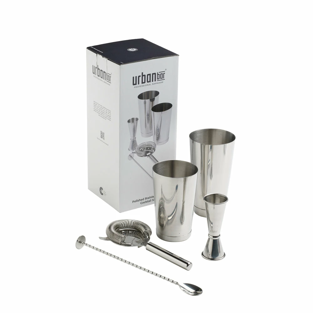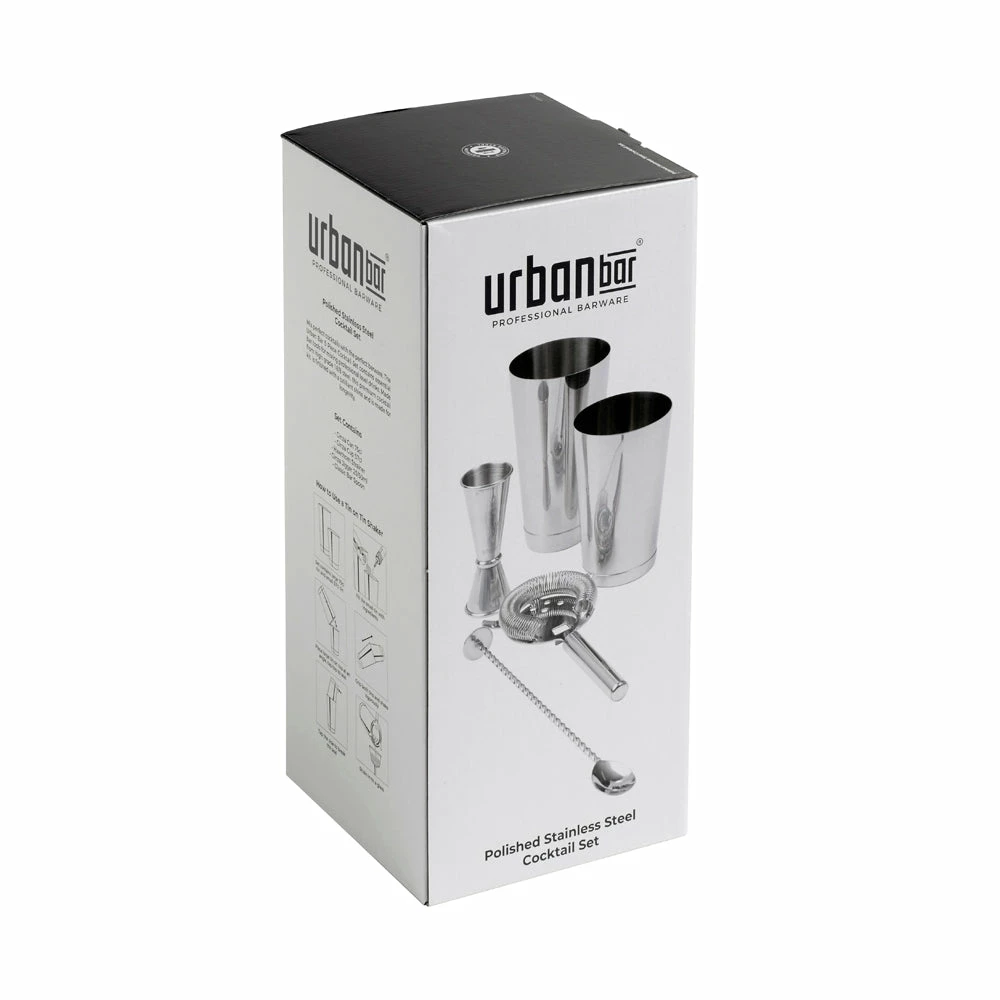 Mix perfect cocktails with the perfect barware. The Urban Bar 5 Piece Cocktail Set contains essential bar tools for mixing 95% of the worldโs cocktails to a professional level.
