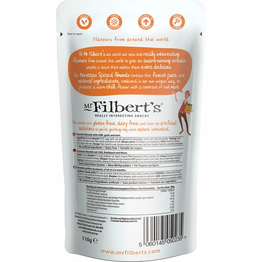 These wonderful Almonds are hot-air roasted before being tumbled in a blend of warming spices and cooling mint to create a contrasting flavour sensation.