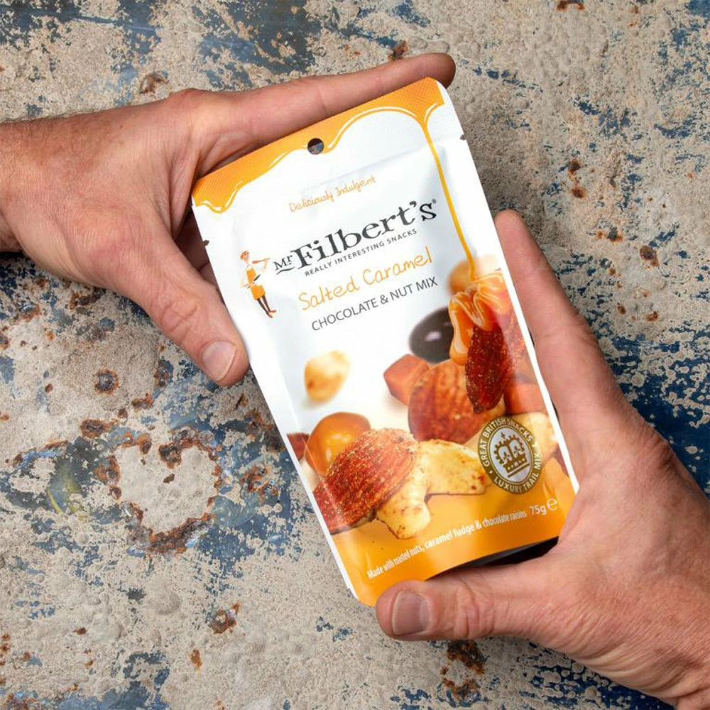 The nuts in our Salted Caramel Chocolate and Nut Mix are hot-air roasted before we add the indulgent honeycomb, salted caramel and chocolate coated raisins. This delicious snack is deliciously irresistible, the perfect sweet treat any time of day.
