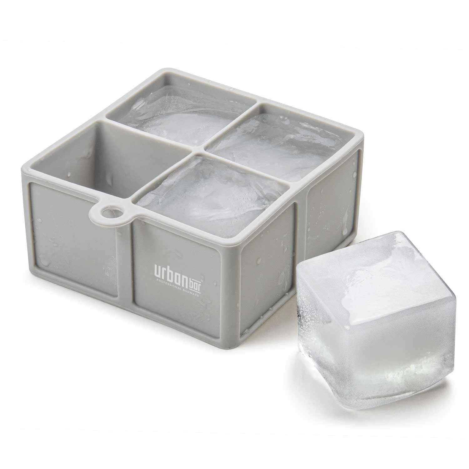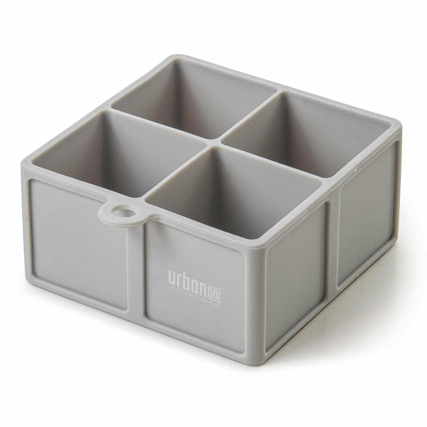 Create a bold drink service with Urban Bar’s Silicone Ice Cube Tray. This 4 cavity ice mould produces large ice cubes, 4.3cm square. The shape of this ice mould gives sharp edges to the cubes. Due to this refined shape, your ice becomes a garnish in itself.