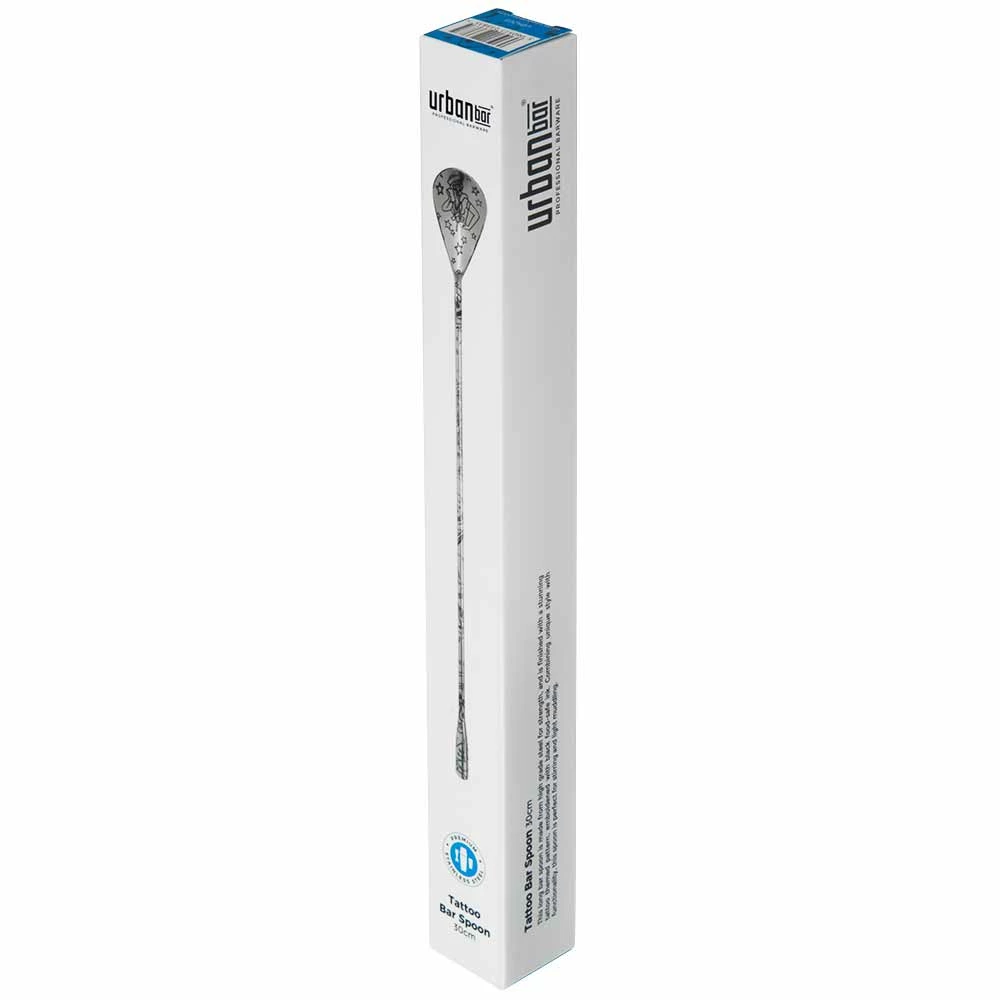 The Tattoo Bar spoon has a classic teardrop tip and features stunning tattoo themed etched patterns coloured with black food-safe ink.