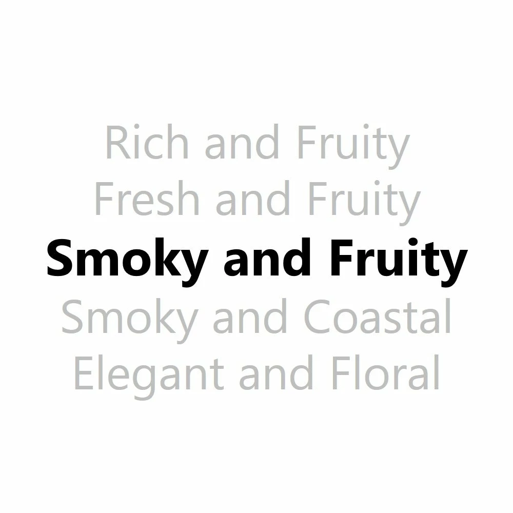 Big and bold with bundles of dried fruits like figs, prunes and raisins with a generous helping of sticky toffee pudding, milk chocolate and a touch of leather. On the palate it’s bigger still, now with a decadent, cherry-chocolate laden Black Forest gateaux, sticky Jamaican ginger cake, crushed nuts and a puff of bonfire smoke. Beautifully balanced and indulgent.