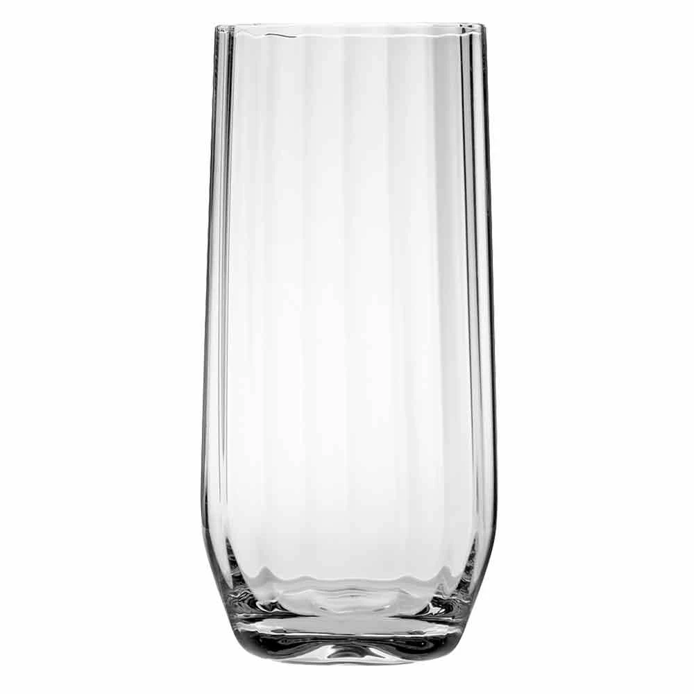 A unique optical effect runs vertically around the body of the glass. This creates multiple curves of light that make a striking display when serving translucent drinks.