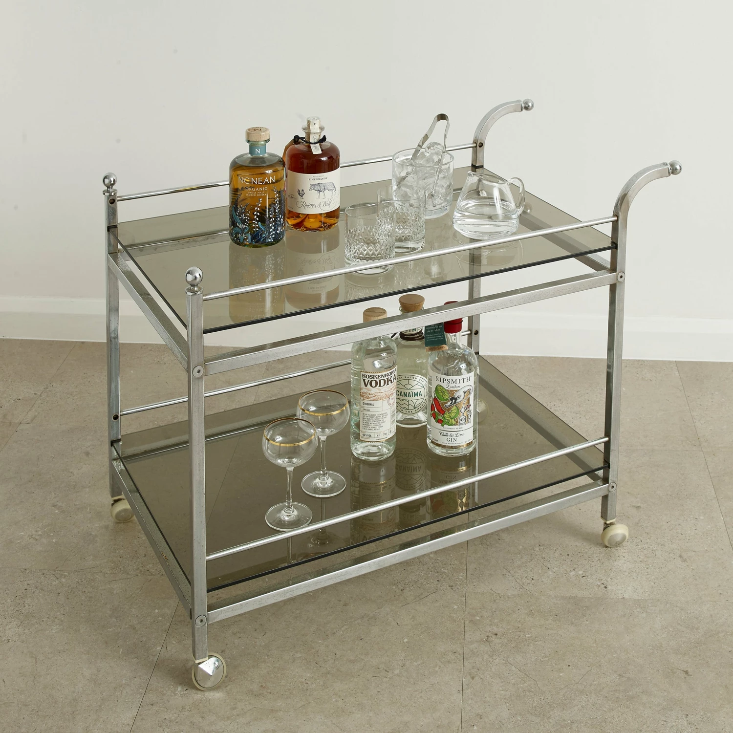 Stylish and elegant trolley, steel with smoked glass shelves.