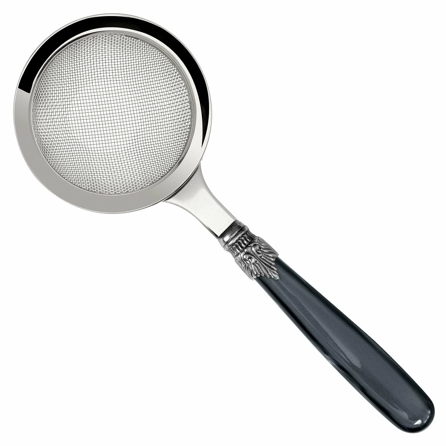 The Classico Fine Strainer offers a premium aesthetic for your mixology. A high grade stainless steel fine mesh head is mounted on a stunning back pearlised handle. These two parts are joined by a Neoclassical inspired steel clasp that adds a unique visual flourish to the piece.