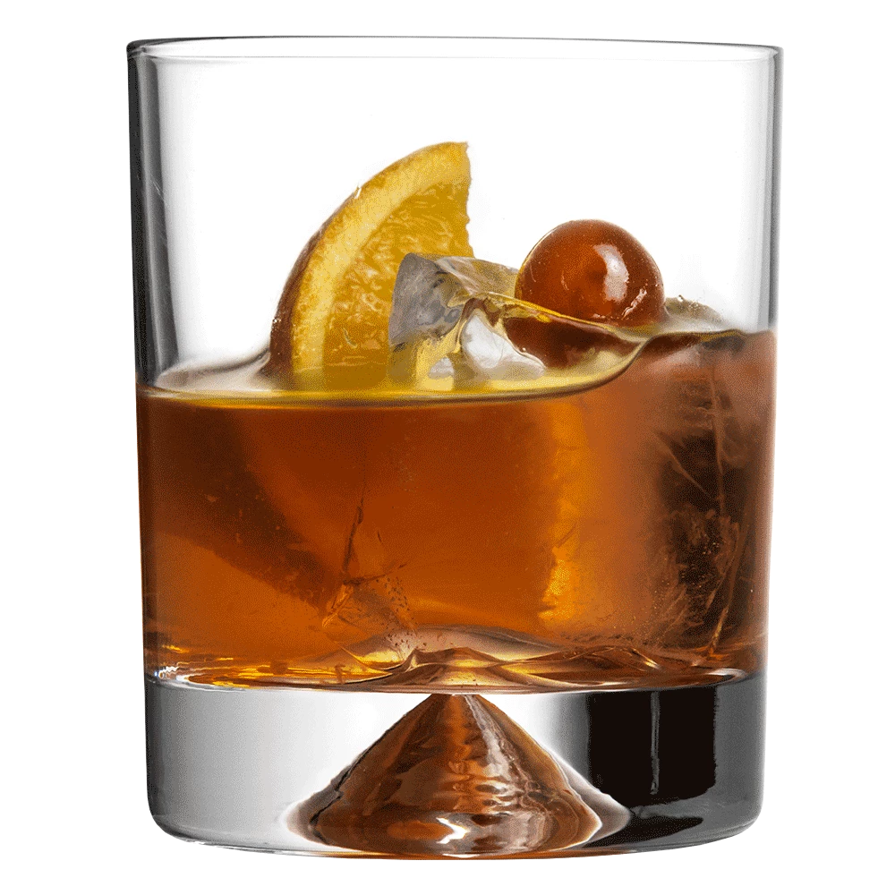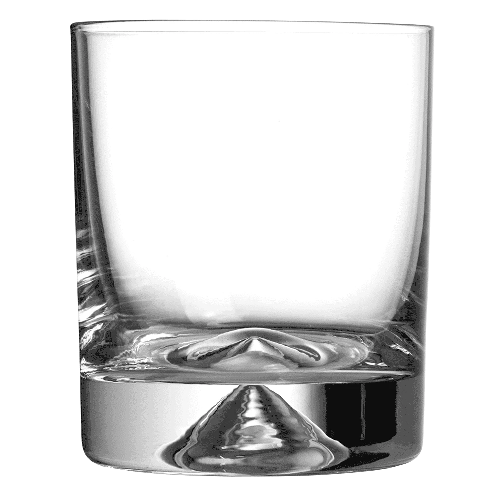 This pyramid glass has a classic rocks tumbler shape, making it popular for whisky service. The mid sized volume also lends itself to serving short cocktails.