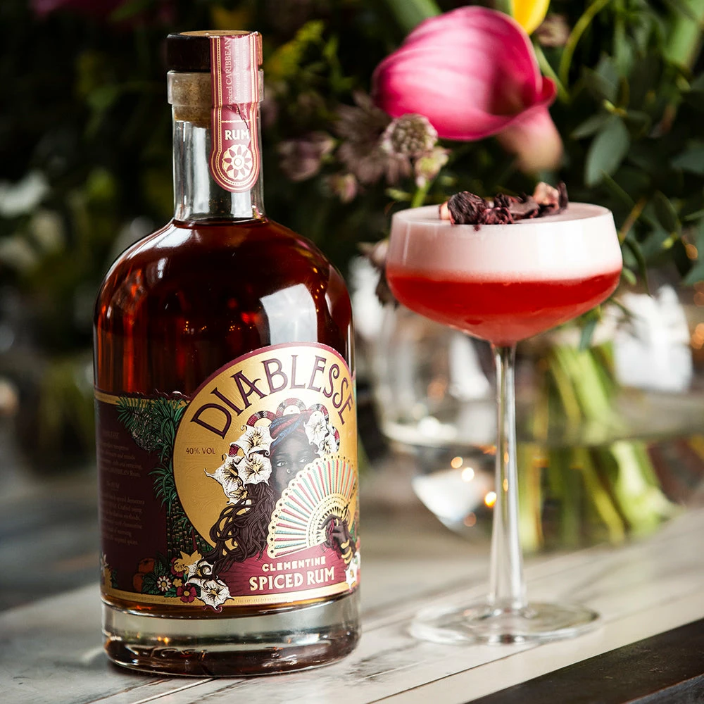 Diablesse Clementine Spiced Rum: made from single origin, 100% Demerara rum from the DIAMOND DISTILLERY in Guyana, using locally produced sugar cane molasses and traditional pot and column distillation methods dating back hundreds of years. Naturally flavoured with clementine and a warm Caribbean spice mix of vanilla pod, ginger, cinnamon and clove.