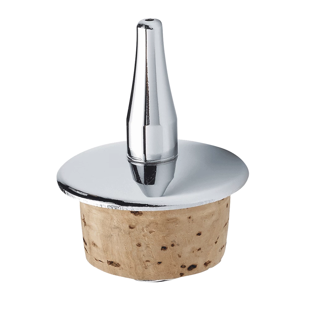 Stainless steel dash pourer for use with glass bitters bottles.