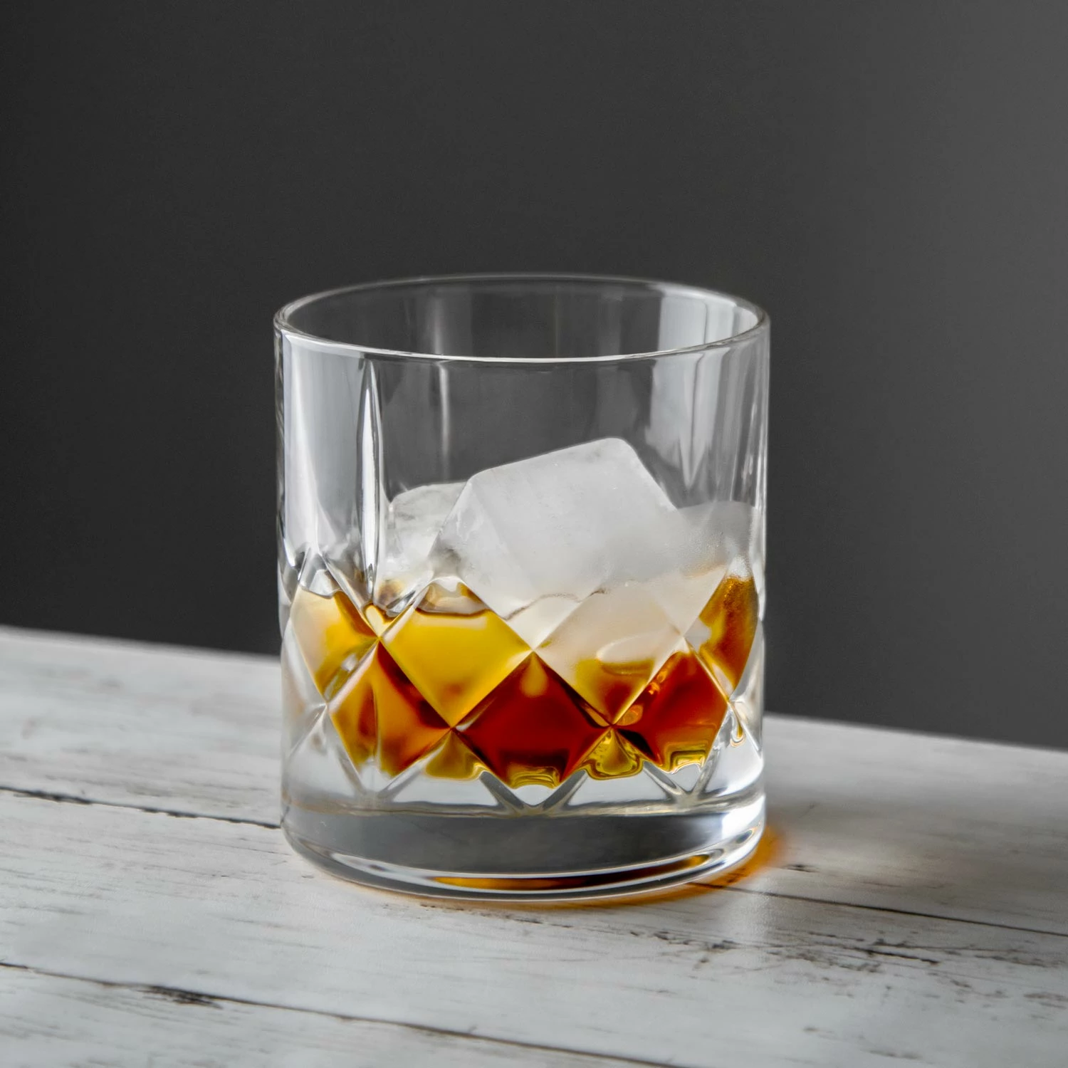 - Cut glass diamond pattern with accentuating vertical cuts