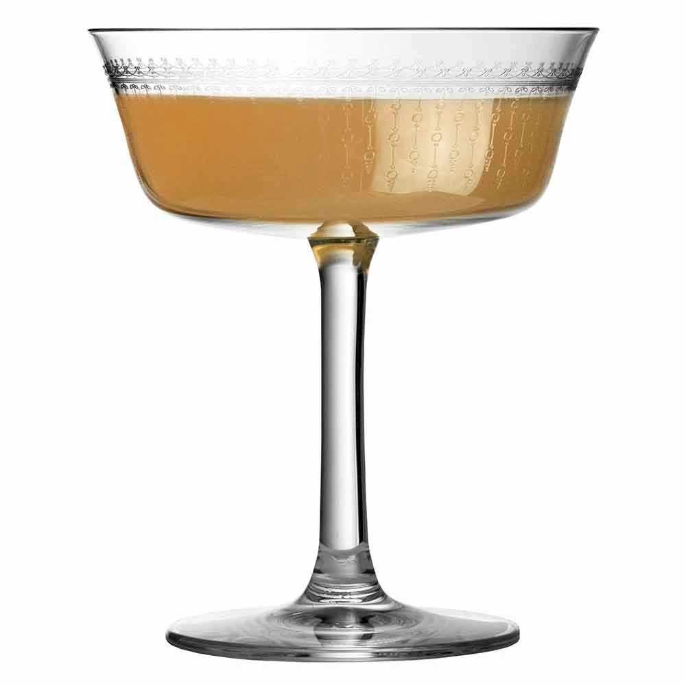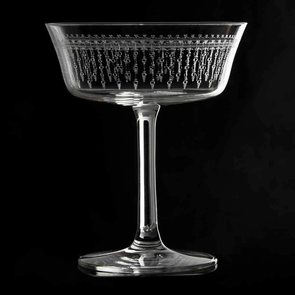 The Fizzio 1920 Coupe Glass brings a vintage touch to your drinks service. Made from lead-free crystal, this piece of stemware has a high transparency. Around the bowl is a pattern that emulates the movement of bubbles in a sparkling drink. As such, this glass is ideal for use as a champagne saucer, or for serving cocktails.