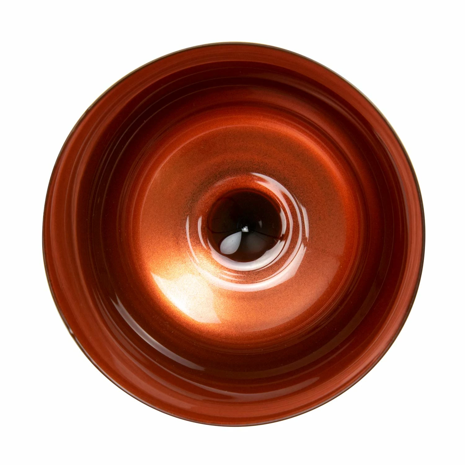 - Vintage stemmed glass with a black coated exterior and a sparkling copper colour interior