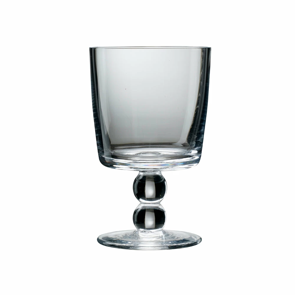 This premium hand made glass has two solid glass balls to make the stem. It is an elegant design that can be used for water, wine, cocktails or the larger one for a long G&T.