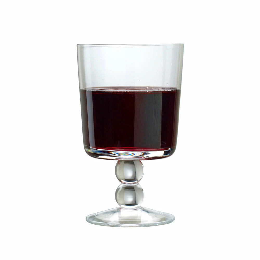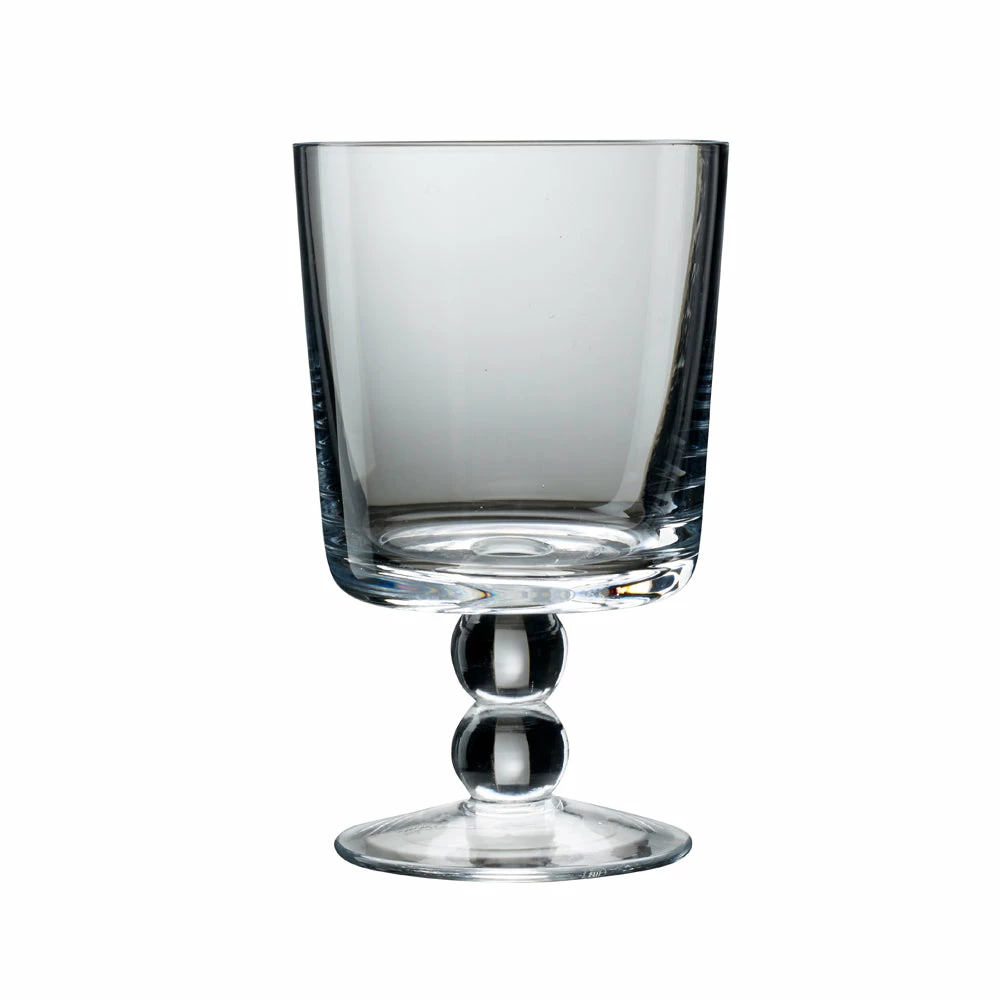 This premium hand made glass has a two solid glass balls to make the stem.ย It is an elegant design that can be used for water, wine, cocktails or the larger one for a long G&T.