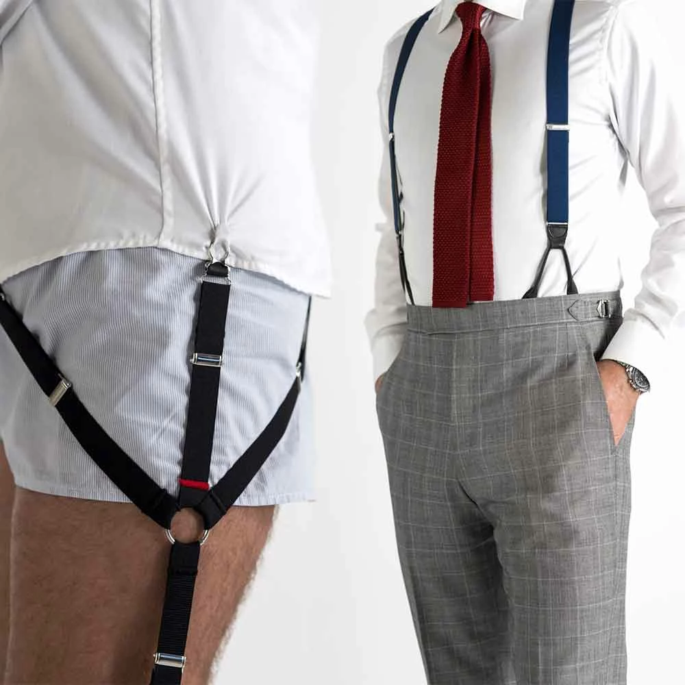 Whether a first impression from a third party, or your own confidence in your appearance, a smart presence goes a long way. To keep your clothing uniform, the Y Style Shirt Stays attach to both your shirt and your socks. With these straps, neither will come out of place.