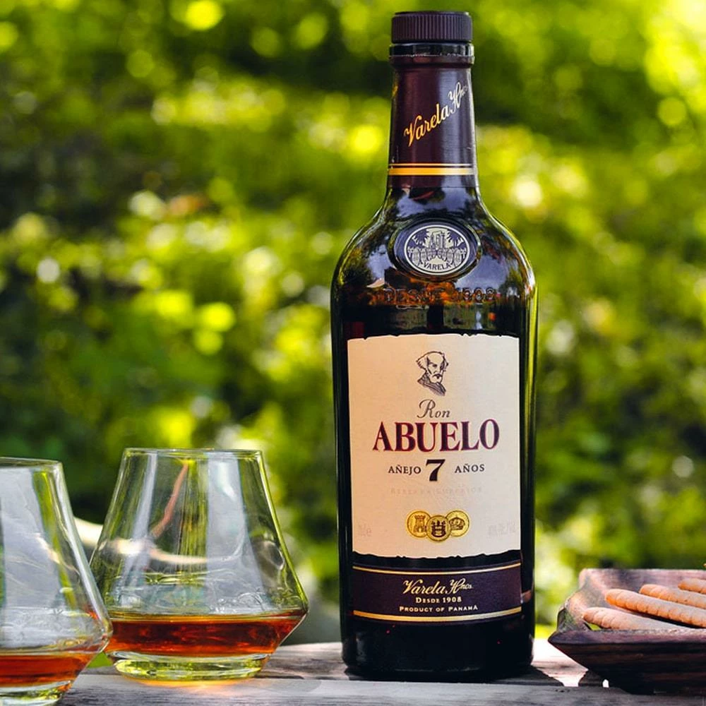 Ron Abuelo (literally ‘Grandfather’s rum in Spanish) is distilled from fermented molasses at the family owned Varela Hermanos distillery in Panama. This light bodied rum, distilled in a twin column still, is aged in American white oak ex-bourbon barrels for an average of seven years. The distillery is one of the few in the world that grow their own sugar cane.