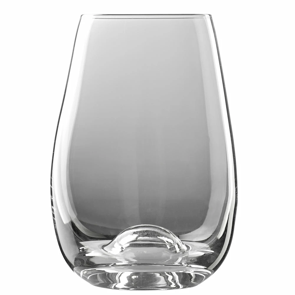 A fine lightweight crystal tumbler with a push up in the base, ideal for putting a thumb in when tasting, a comfortable glass. An ideal shape for the appreciation of spirit or wine and can also take a small splash of something or an ice cube or two!